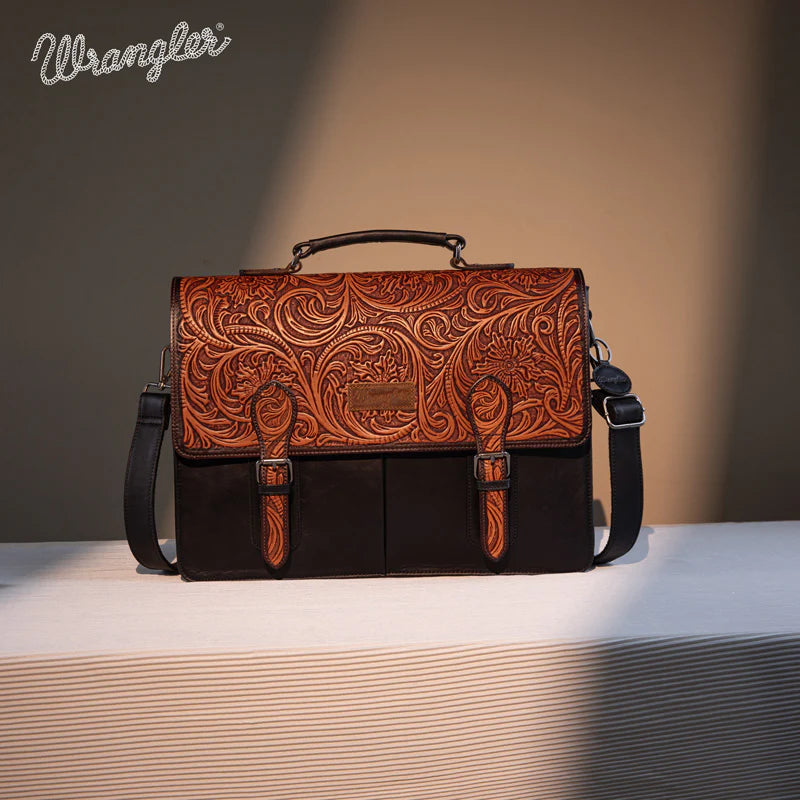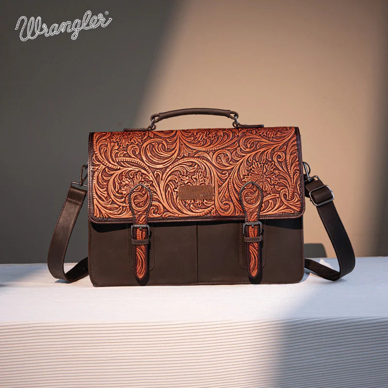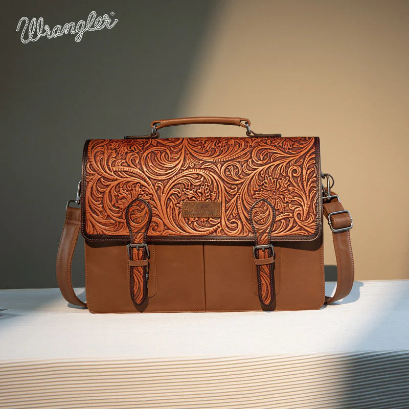 - A floral tooled trolley sleeve on the back easily slides over rolling luggage handles.